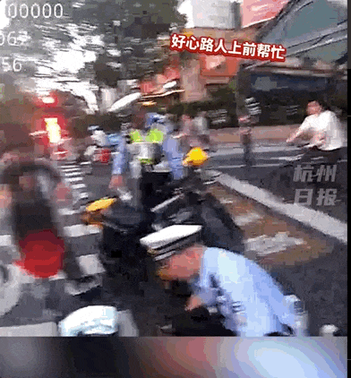 第一个冲上去的,是西湖交警大队文新中队骑警杨天宏。当时他就在路口对侧执勤,听到声响立马赶了过去。