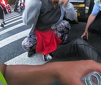 这一幕把周围的人都吓了跳。“有人倒在地上了!”旁边的路人急得大喊。