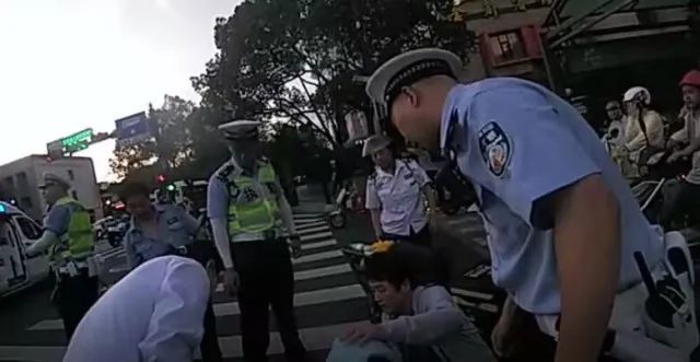 除了交警,短短3分钟时间里,小伙身边还围了五六个路人。有人拿出风油精、矿泉水,有人蹲在地下查看小伙的脉搏,大家都在想办法帮忙。