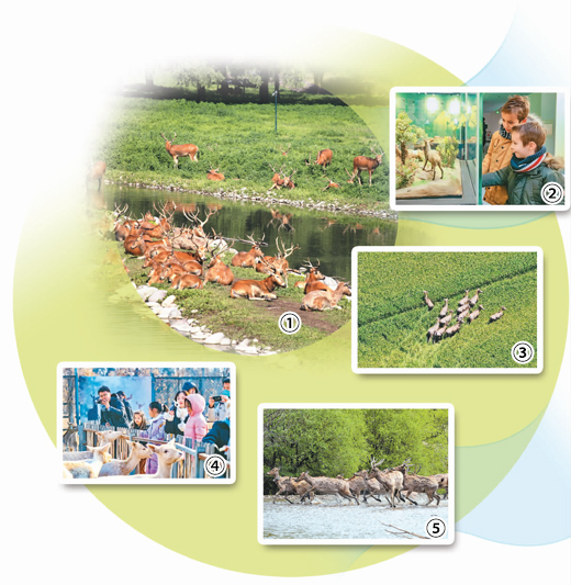 ④ : Visitantes observan ciervos milú en el parque Nanhaizi en el distrito Daxing de Beijing. (Foto cortesía del parque Nanhaizi)