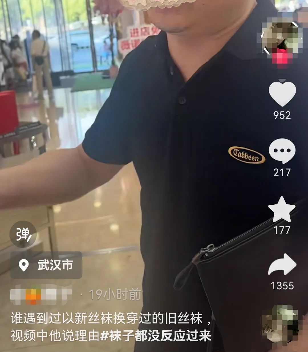 8月20日,一武汉女网友在网络平台发布视频称,自己在商场遇到一名男子,要用新丝袜交换她腿上穿着的旧丝袜。在视频中,女网友询问缘由,男子称“拿来去提炼,有这个工序,如果是用洗衣粉洗过的,还要把洗衣粉提出来,不然做出来的抹布没有韧性。”并称系为丝袜公司做推广。女网友最终告知该名男子“有点变态。”
