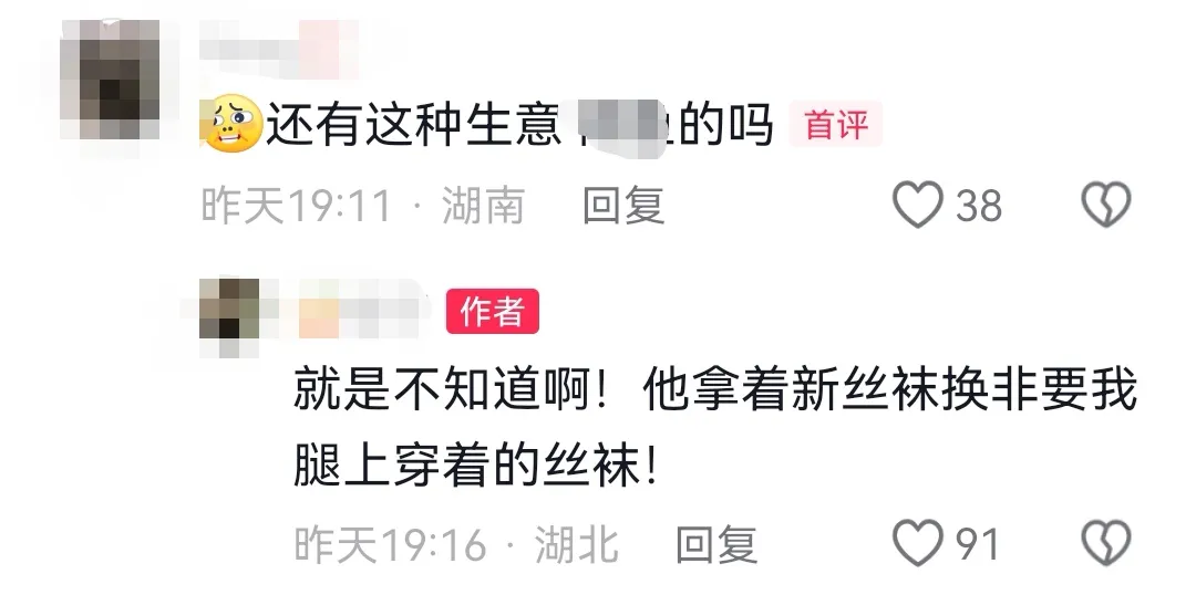 评论区不少网友均建议发布者报警,也有网友表示,如该男子转卖旧丝袜,有可能涉嫌违法。