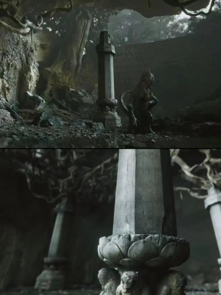上为游戏场景,下为五台山佛光寺唐大中经幢,图片源自山西文化和旅游厅。