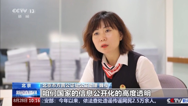 北京市方圆公证处公证助理 魏俊:咱们国家的信息公开化的高度透明,协助了我们很多工作的顺利进行。我们如果像以往通过打电话去当地核实,速度肯定不会这么快。