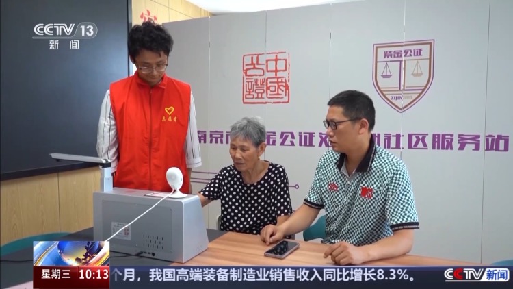 记者现场看到,张翠珍在公证辅助人员的帮助下,通过远程公证一体机连线南京市紫金公证处的公证员,不到20分钟,就在线上了完成身份识别、材料审核、谈话了解等公证程序。公证员制作好公证书后,将通过邮递的方式送达给当事人。