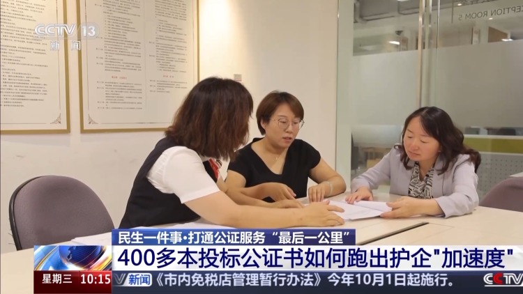 打印、装订,这400多本公证书被装进行李箱被企业方带走并将迅速送抵海外参与项目竞标,为了配合企业“走出去”的时效,从提交材料到出具公证书,经常只需要几天的时间。