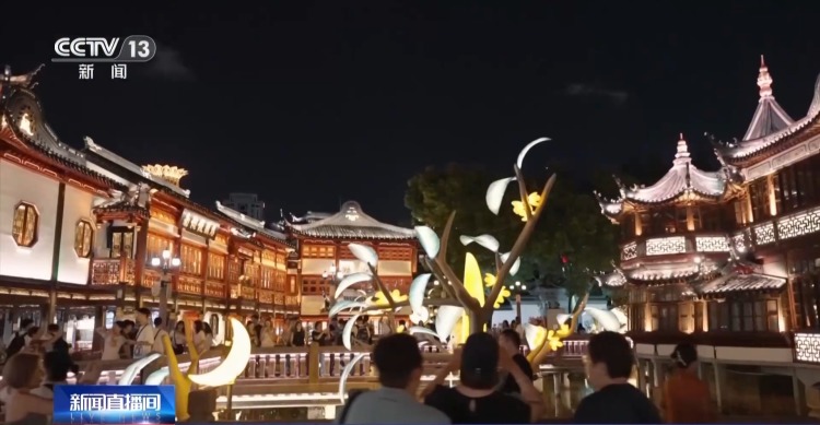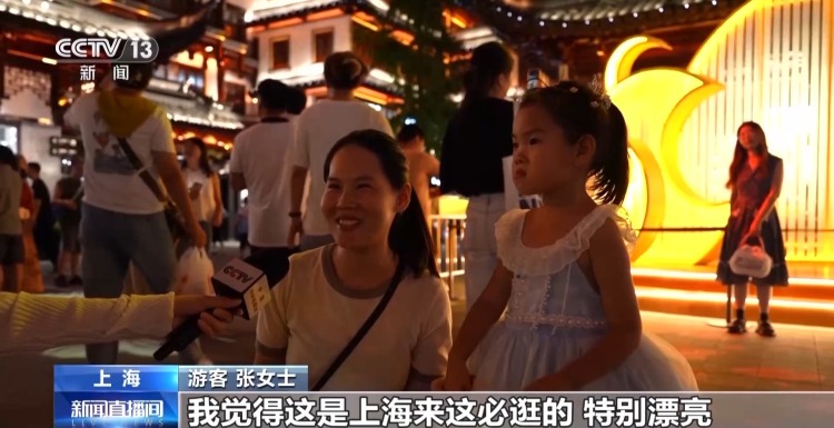 游客 张女士:我觉得这里是来上海必逛的,特别漂亮,有中国传统文化在里面,正好应了中秋节这个景,我特别喜欢。