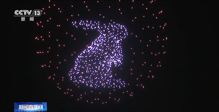 以夜为幕,以光为笔。千架无人机排列出“嫦娥”“玉兔”“孔明灯”等图景,中秋的浪漫与诗意在夜空中铺陈开来。