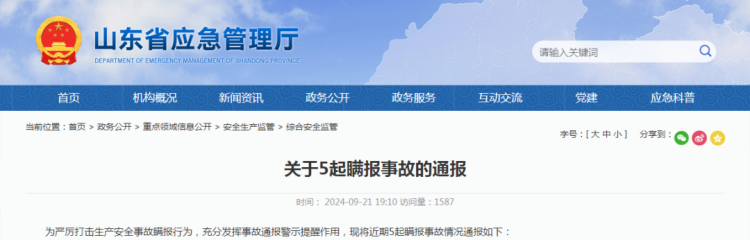 为严厉打击生产安全事故瞒报行为,充分发挥事故通报警示提醒作用,近日,山东省应急管理厅通报了5起瞒报事故情况。其中,烟台莱州山东黄金矿业(莱州)有限公司在半年时间内,瞒报3起致人员伤亡事故。