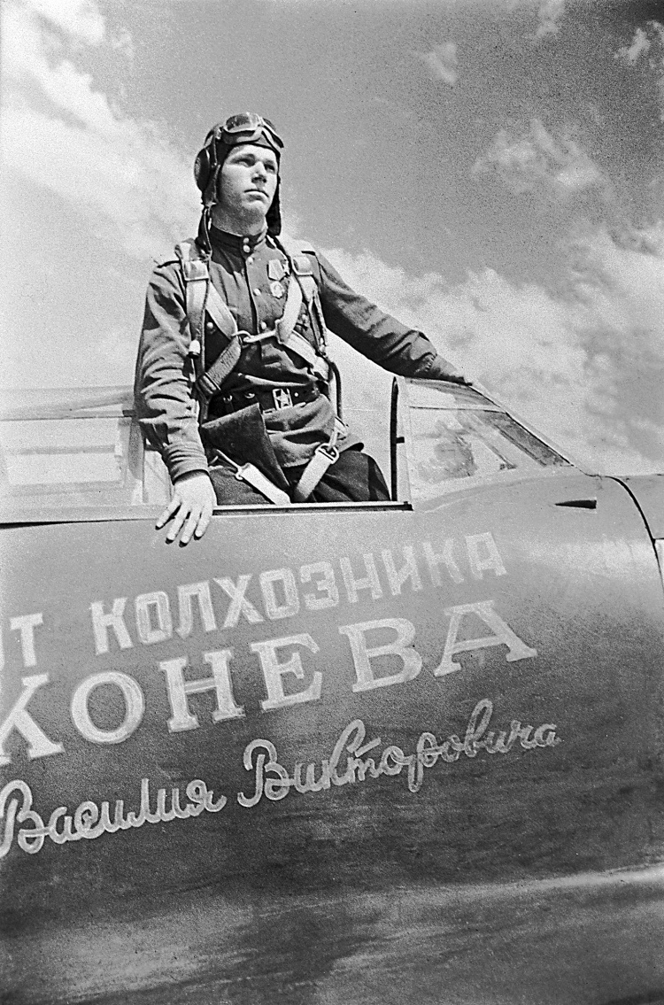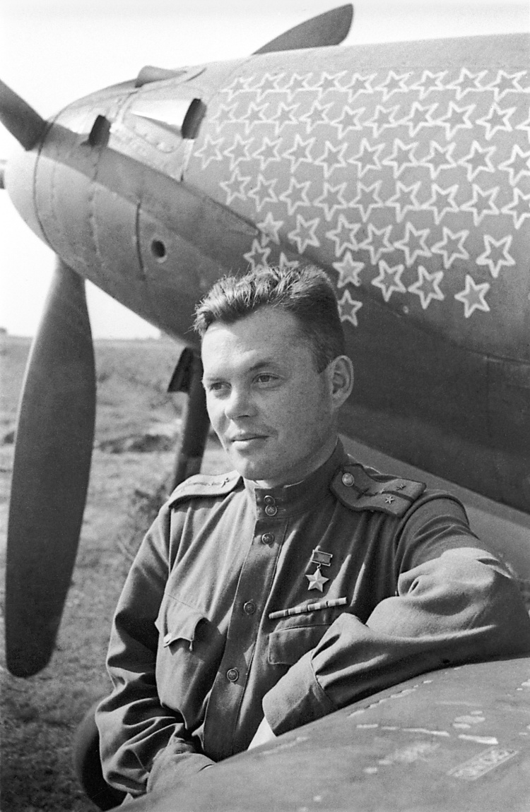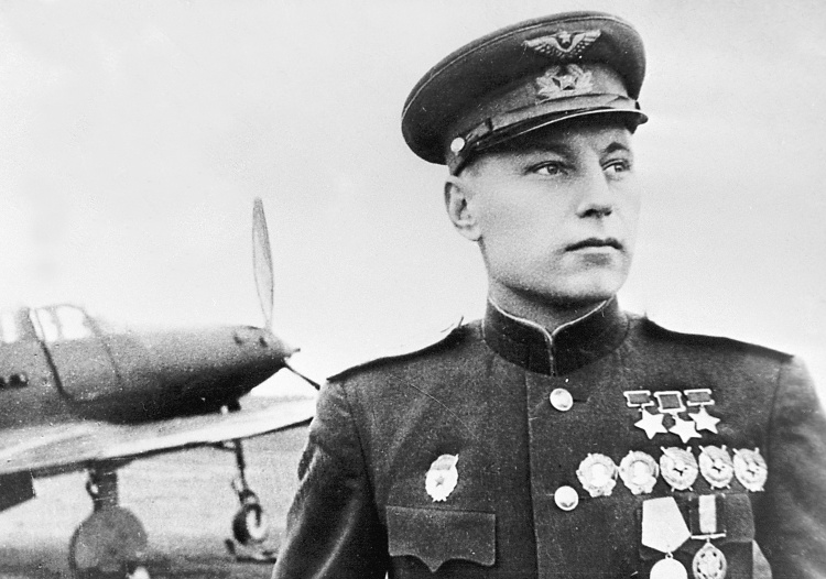 伊万·阔日杜布(Ivan Kozhedub) 伊万·尼基托维奇·阔日杜布(Ivan Nikitovich Kozhedub)这样定义空战的精髓:“精确的机动、压倒性的快速攻击和极近距离的打击。”这位著名的飞行员共击落敌机62架,不仅是红军空军中击落敌机最多的飞行员,也是反法西斯联盟所有国家中击落敌机最多的飞行员。由于1943年春才抵达前线,阔日杜布的飞行架次和参加的空战次数分别为330架次和120架次,少于列奇卡洛夫和波克雷什金。但他的主动、胆识、精明、勇气和智慧使他成为苏联头号王牌飞行员。