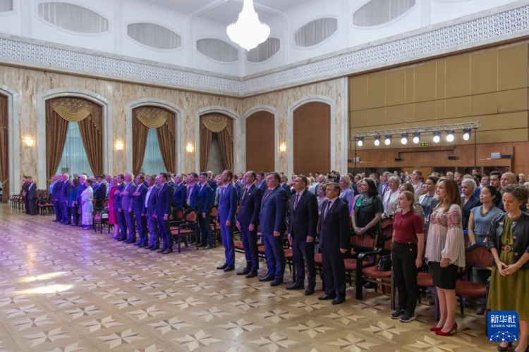 9月25日,在摩尔多瓦基希讷乌,嘉宾参加中国驻摩尔多瓦大使馆国庆75周年招待会。新华社发(王翔摄)