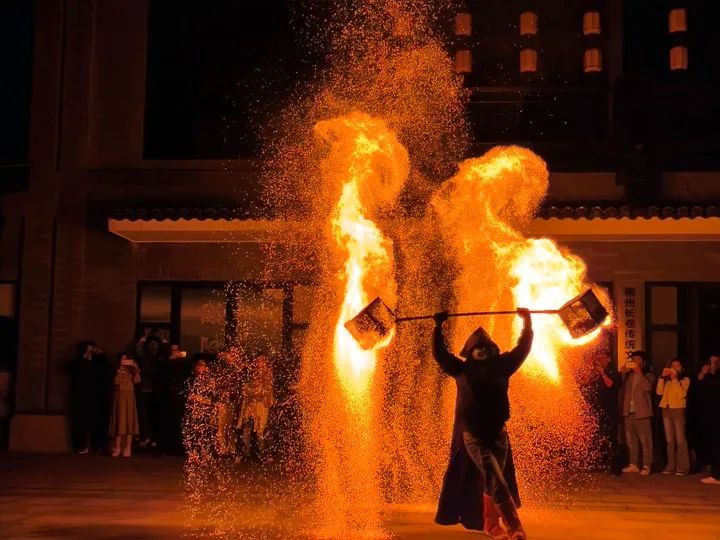 一场飞星夺目的非遗“火壶”表演令游客叹为观止,绚烂的火光照亮黑夜,也点燃了游人们的热情,寄托了大家的美好祝愿。