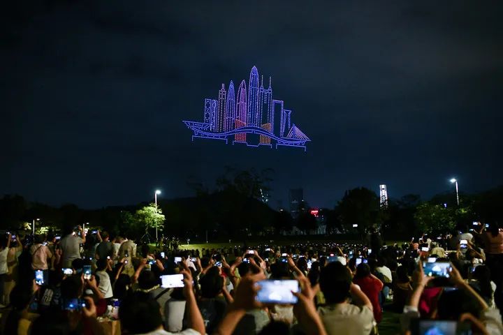 夜空化作绚烂的舞台,全城万架无人机表演,为市民、游客奉上科技与艺术交织的精彩演出,彰显深圳“文旅+低空+科技”深度融合的独特魅力。