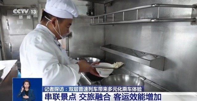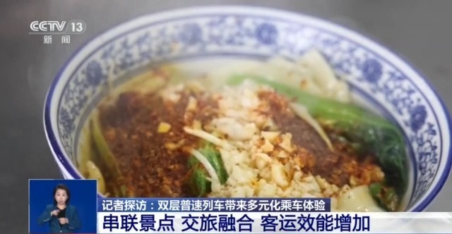 总台央视记者 陈晰:到了用餐时间,大家还可以走到餐车,这里除了有家常菜,还有羊肉泡馍、油泼面、臊子面这样的陕西特色美食,用陕西话说就是“撩滴很”!
