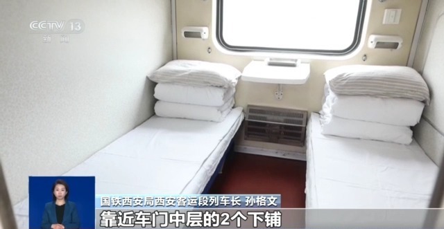 国铁西安局西安客运段列车长 孙格文:双层列车硬卧车厢每节共有80个铺位,由于楼梯的原因,特殊重点旅客乘车会有不便,为此列车工作人员将宿营车靠近车门中层的2个下铺设为专用铺位,开放式的洗漱台空间更加宽敞,使用起来也更方便。