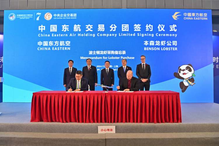当天集中签约仪式上,中国东航旗下东航物流所属的东航冷链与加拿大本森龙虾公司签约,将在未来5年内进口波士顿龙虾。随着经济持续发展,中国消费者对海外优质生鲜产品需求大增,东航依托领跑中国民航的物流创新和改革,利用首创的产地直达包机模式,成规模进口全球各地生鲜产品,让生鲜从产地新鲜直达国内消费者餐桌。今年,东航北美航线进一步恢复,东航物流积极布局,成立东航冷链,该公司与北美地区的主流生鲜供应商建立了更稳定的合作关系,共同推动波士顿龙虾在中国消费市场的繁荣。