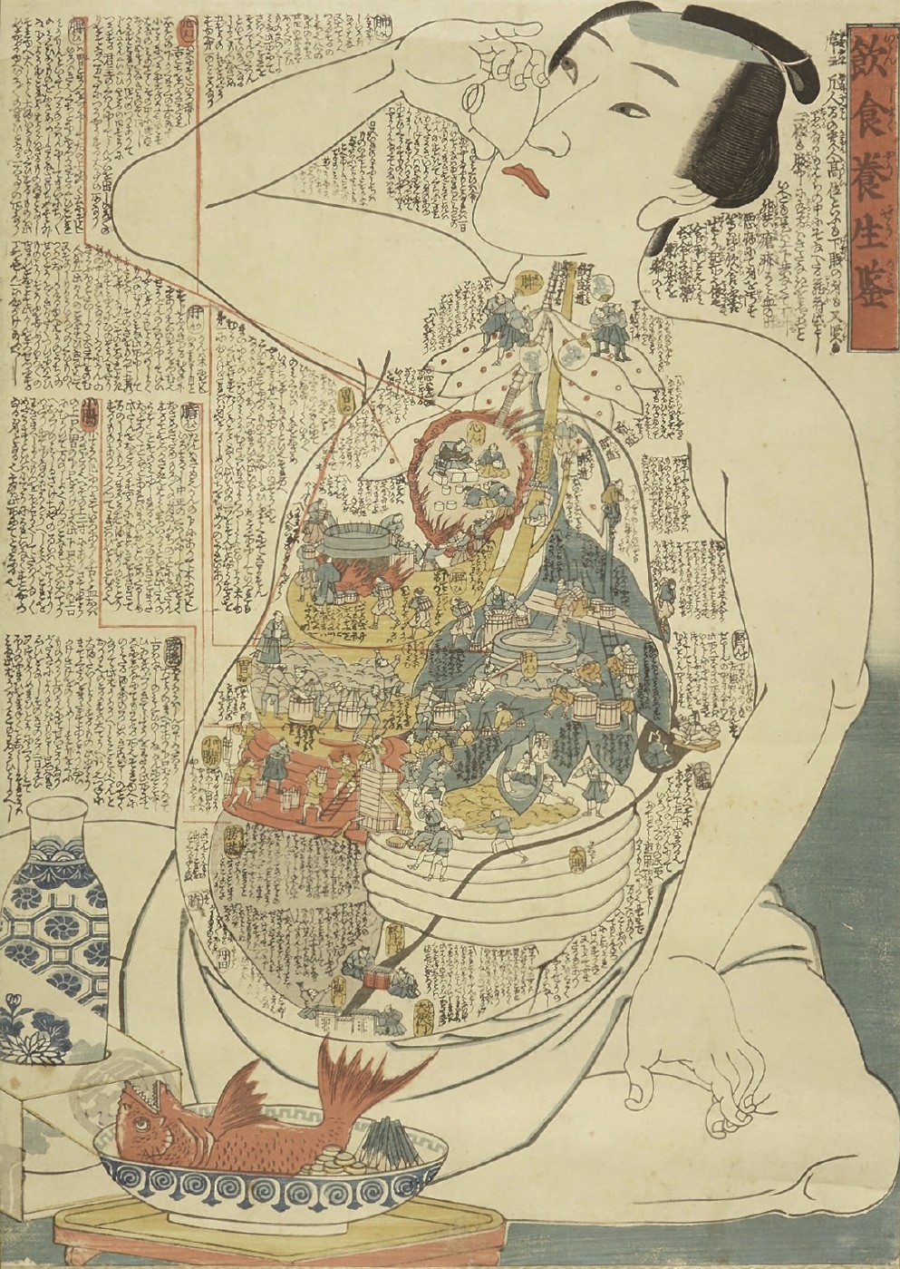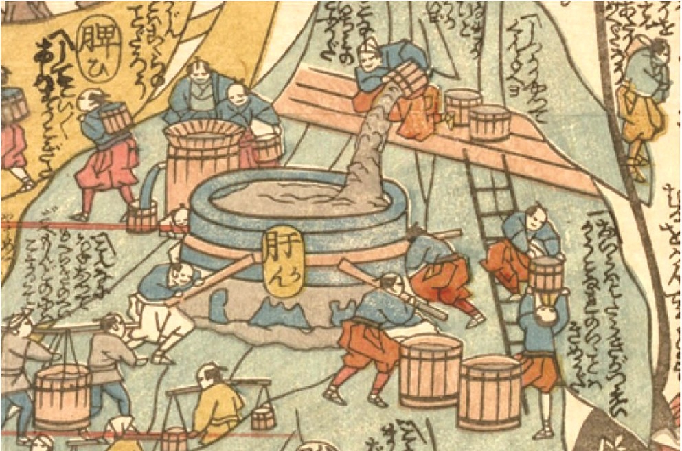 一张19世纪日本的浮世绘,画了一个人肚子里的微生物活动,从中可见日本人对自然界——所谓“天”——的一种特别的想象。浮世绘把微生物拟人化,在人体内勤奋地分工合作,犹如酱油或清酒工场工人的作业情景。法国科学家巴斯德就在这个时期创建了对后世影响深远的细菌论。日本对微生物的想象与新兴的细菌论产生了共鸣。这也部分解释了为什么日本酿造业如此快速地把西方的生物化学新知识融入传统的酱油工艺,顺利把工艺工业化。