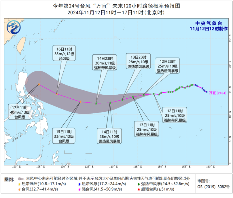 预计,“万宜”将以每小时20-25公里的速度向西偏南方向移动,强度缓慢加强。