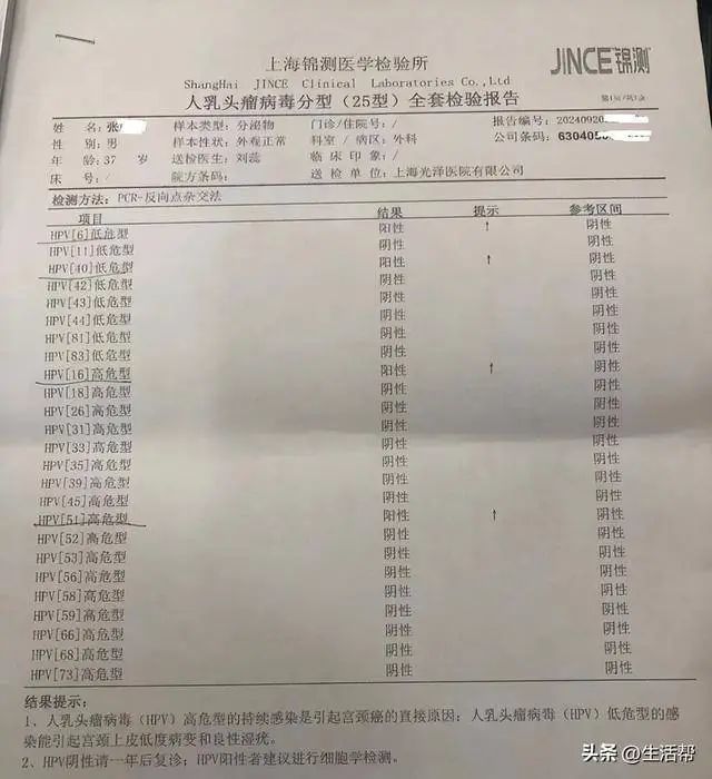 为了真正查清“病因”,9月26日,张先生又来到上海市第十人民医院检查。根据他所述情况,医生开具了HPV病毒检查单,隔天报告显示“全部指标都为阴性”。“我拿上报告问医生,他告诉我什么病都没有,不用治疗。”三甲医院的检查结果让张先生很是气愤,“我什么病都没有,光泽医院为什么让我花这么多钱治病呢?”