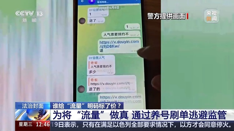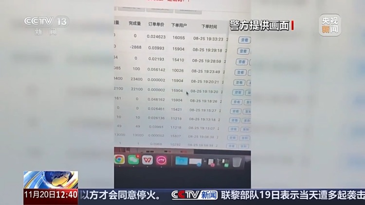 警方取证的一段视频显示,网络水军的违法嫌疑人正在一个流量群里展示他们的后台订单数据,一旦有客户下单,他们就可以在短时间内快速完成。