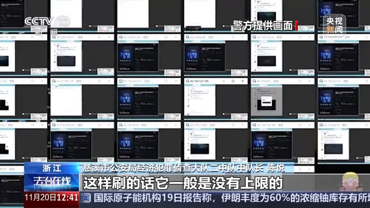 慈溪市公安局网络警察大队副大队长 陈威晔:我们在江西赣州一个比较破旧的民房里面很隐蔽的地方,找到了工作室,走到房间的时候,我们进去以后就发现房间里大概有600部工作机,有一部分还在进行一个上人气的操作。