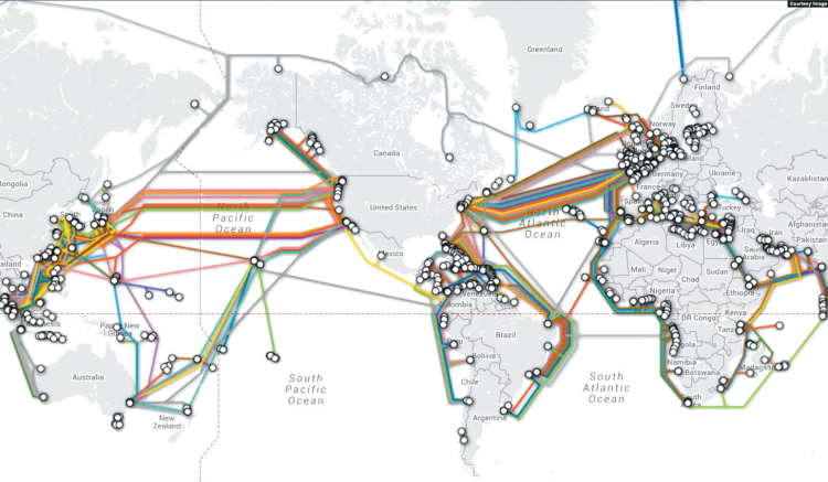 美国电信市场调研公司TeleGeography的报告称,目前全球约有400至600条光纤电缆在世界海底纵横交错,总长140万公里,足以绕地球约35圈。美国商务部国家海洋和大气管理局的数据显示,这些电缆承载了全球95%以上的互联互通的数据流。美国智库战略与国际问题研究中心在一份报告中解释说,如果没有这些铺设在全球海底的数百条光缆作为数据高速公路,现代社会早已习惯的5G网络、云计算、视频流、金融交易以及科研、外交等都不可能实现。