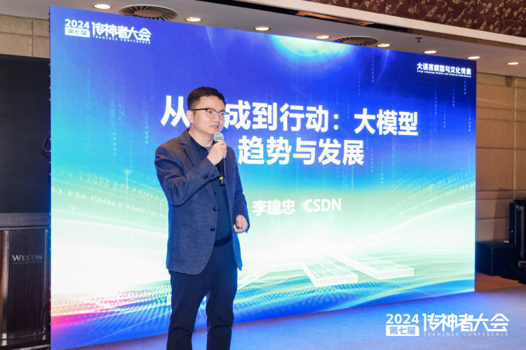 本届大会现场,CSDN高级副总裁李建忠,围绕《从生成到行动:大模型趋势与发展》主题,分享了他对智能技术最新迭变的洞察。李建忠指出,从连接1.0到计算1.0,再到连接2.0,大模型的出现标志着计算2.0时代的开启。他强调,未来产品的设计,包括跨语言服务,将更多地考虑智能体的需求,以适应这一变革。
