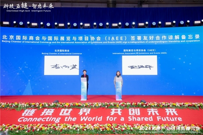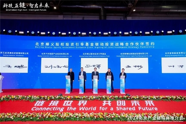 推介会上共达成三项正式签约,务实推进国际交流合作,为北京产业链发展注入新动能。北京市贸促会与国家发展和改革委员会国际合作中心签署战略合作协议,北京国际商会与国际展览与项目协会(IAEE)签署友好合作谅解备忘录。北京顺义区政府投资引导基金揭牌暨联动投资战略合作伙伴签约,该引导基金注册资本10亿元,远期规模为100亿元。
