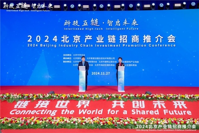 11月27日,由北京市贸促会主办,北京国际商会和氪星创服承办的2024北京产业链招商推介会(以下简称“推介会”)成功举办。作为第二届链博会的重要专题活动之一,本次推介会以“科技互链·智启未来”为主题,进一步利用展会资源促进招商引资。中国贸促会副会长张少刚,北京市人民政府副秘书长刘梅英,北京市贸促会党组书记、北京国际商会会长郭怀刚,英中贸易协会高级总监朱俊博(Kiran Patel)等致辞。北京市贸促会主任李向英、顺义区区长崔小浩、俄罗斯联邦工商会北京代表处首席代表古德科夫·尼古拉、ABB集团副总裁董慧娟、三菱日联银行(中国)有限公司副董事长增井宪等出席。