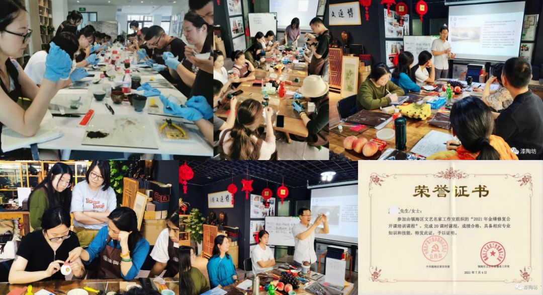 先后与宁波大学、山东大学、东北大学等对接,后又加入镇海区高校毕业生实践(见习)基地,有效吸纳镇海本地各高校人才,髹漆金缮的技法课程,每年培训初级学员100人以上。创建期内吸纳固定就业人数20余位,灵活就业人员100余位。