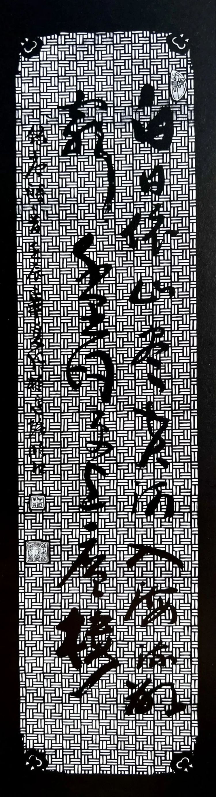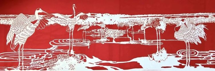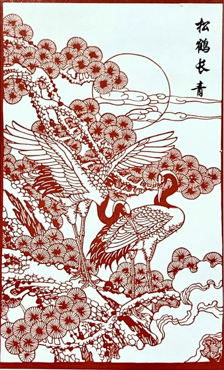 松树与仙鹤在中华文化中有长寿、高洁的寓意。作品用2万余刀,细致入微地描绘出鹤立松枝的美好画面。本作品采用传统剪纸技法,将松上仙鹤表现得栩栩如生。既有中国水墨绘画的意境,又具备剪纸艺术中独特的艺术美感。