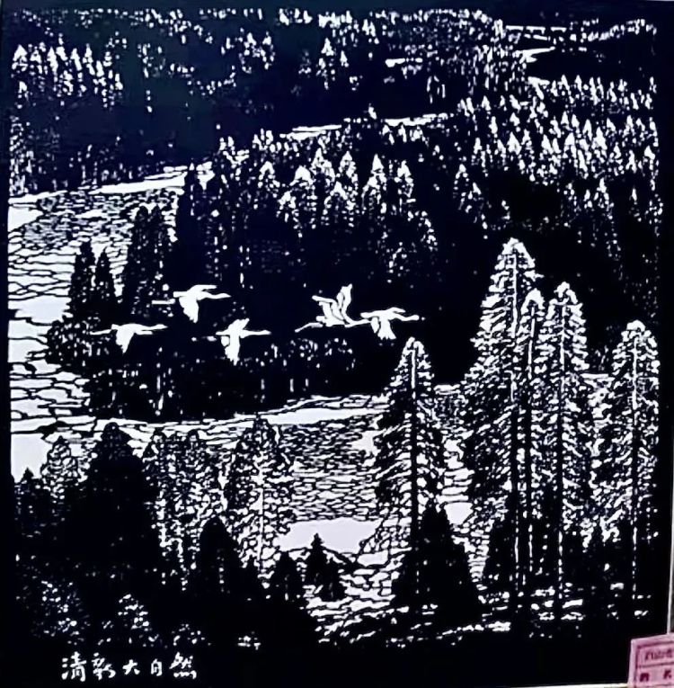 作品《清泉大自然》是现代剪纸技艺的集大成之作,用阴雕与阳雕相结合的精湛技艺刻画山林、树木、大雁、长河。作品刻画细致入微,技法自然洒脱,浑然一体仿佛身临自然山水之中。