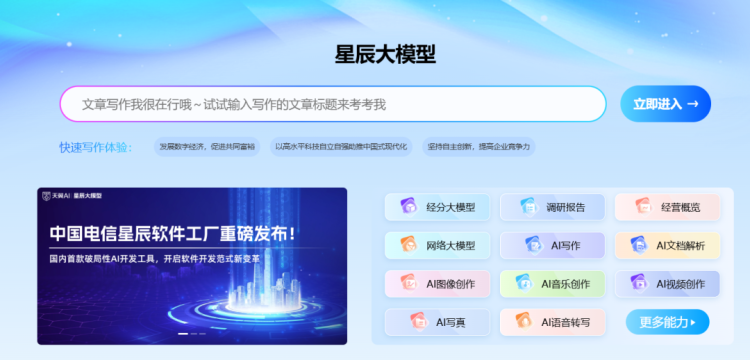 星辰大模型,是由中国电信自主研发打造的全国产化万亿参数大模型。依托星辰大模型,中国电信面向行业需求痛点推出一揽子智能化行业解决方案,公安、政务、应急、工业等十几个重点行业和领域实现了落地应用。在央企“AI+”中,超过20家央企使用星辰大模型,涉及物流、汽车等超10个行业领域。