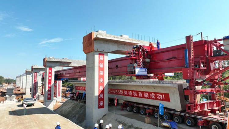 11月28日,全球首台千吨级多模式新能源架桥机“应龙号”在珠肇高铁江机段JJZQ-8标完成首架任务,标志着由中国中铁工业旗下中铁科工研制的全球首台千吨级新能源架桥机研制成功。该台新设备在千吨级架桥机基础上,配置“增程器+动力电池”动力源系统及其控制策略,首次将新能源技术应用在架桥机上,应用后设备燃油消耗可节省40%。