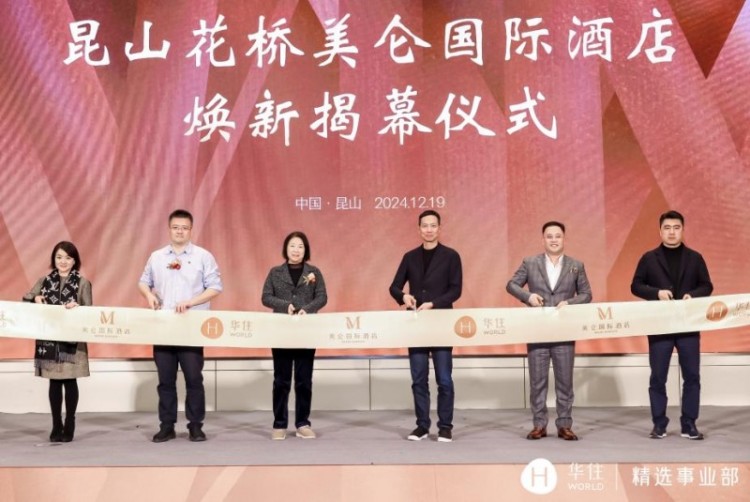 随后,华住集团首席执行官金辉、首席财务官陈慧、品质精选事业部CEO张书荣、联席开发官朱贺、供应链研发和采购中心高级副总裁陈骐、运营副总裁邓苗共同上台,开启昆山花桥美仑国际酒店焕新揭幕仪式,热烈庆祝昆山花桥美仑国际的焕新再出发。
