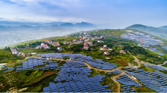 在湖南娄底,新能源开发与生态振兴、产业振兴有机结合,通过“板上发电、板下种植、集雨防风、修复土壤”,使昔日位于“石漠化区、重金属污染区、采矿塌陷区”的荒山岭,相继变成了花山岭、银山岭。