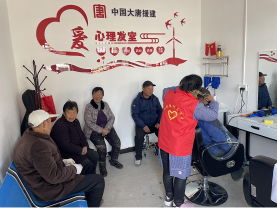 图6:在中国大唐援建的爱心理发室里,志愿者为和家楼村的老人们理发。