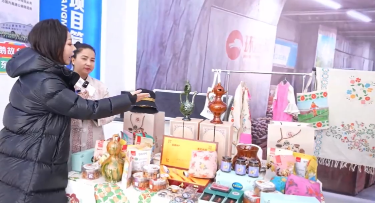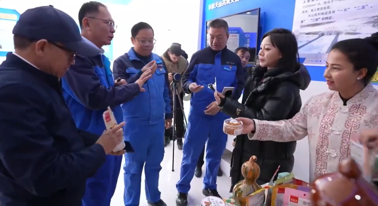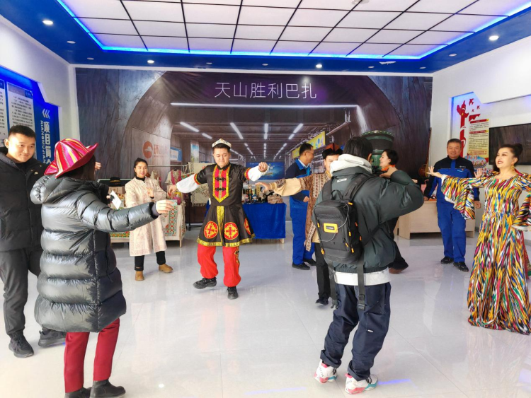直播当天,在隧道出口端洞外的“天山胜利巴扎”快闪集市热闹开市。来自新疆巴州和静县、博湖县、尉犁县等多地的文旅推荐官现身“天山胜利巴扎”,以集市摆摊、歌舞联欢等形式,展示天山胜利隧道建成对当地带来的影响,生动诠释了超级工程与民生福祉的紧密相连。