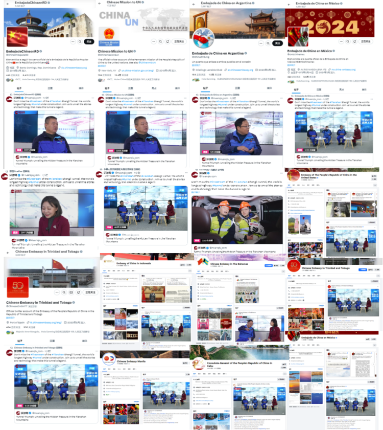 中国常驻联合国代表团、中国驻美国大使馆、中国驻英国大使馆、中国驻希腊大使馆、中国驻墨西哥大使馆等共18个中国驻外使领馆转载直播。