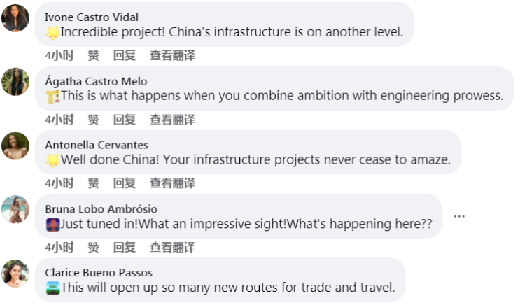 来自法国、巴西等国家的网友分享了自己的观点。法国网友称赞:“Grand accomplissement ! Bravo à toute l'équipe derrière ce projet.”(伟大的成就! 这个项目建设团队太棒了)。巴西网友表示:“Incredible project!”(震撼的项目)。还有网友惊叹:“Absolutely amazing! The technology behind this is light-years ahead.”(超棒的技术! 这些TBM机器的效率令人难以置信)。“How is the project ensuring minimal environmental impact? ”(项目如何确保对环境的影响最小?)。直播中记者和天山隧道工作人员也对网友关注的问题一一介绍解答,让大家更多了解天山隧道贯通的重要意义。