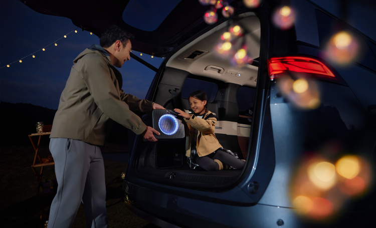 值得一提的是,夏的第三排音箱可单独拆卸为户外蓝牙音箱,电池容量15000mAh,外放功率达170W,续航长达9小时,支持车友双音箱互联、外接麦克风,车载车充,无需单独充电。