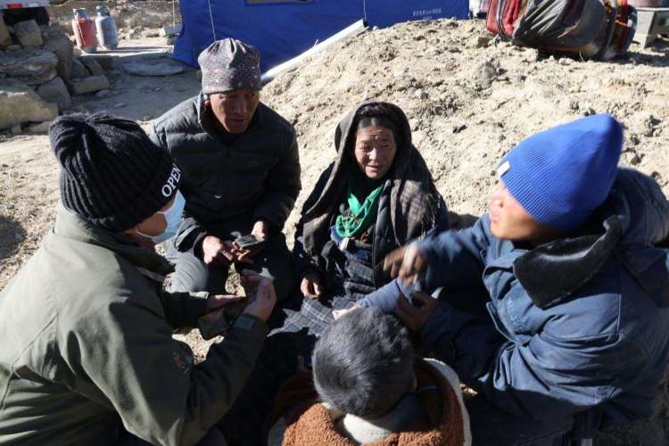 位于西藏日喀则市定日县长所乡杂村的临时安置点,一间间帐篷亮起了灯盏,帐篷内火炉正旺。45岁的村委会主任白玛多吉,与副主任桑吉尼玛和村委会监督员次仁多吉,拖着疲惫的身躯走进自家帐篷。
