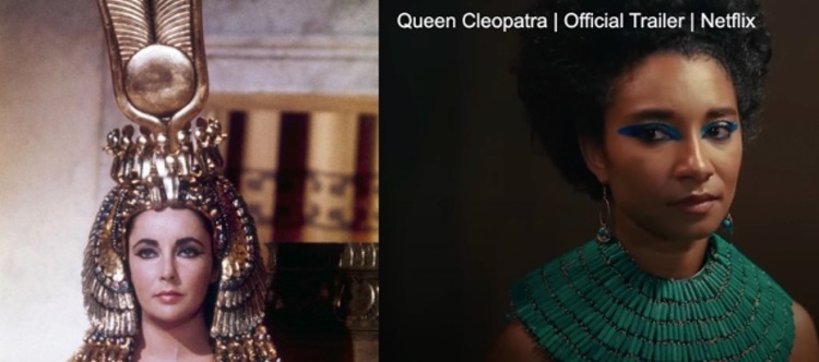 2023年春季,美国的网飞在线视频网站推出历史剧《克里奥帕特拉女王》,由一黑人女演员主演“埃及艳后”,而1963年的电影由白人著名演员伊丽莎白·泰勒主演。2023年的剧引发一些争议。当代埃及人质疑非裔美国人是否有资格讲述、诠释古埃及历史,是不是古埃及文明的继承人。黑人演员的选择符合非洲中心主义倡导者的观点:古埃及人为黑皮肤人,古埃及文明因此也是黑色的。因此,这部剧也得到了一些力图反思欧洲中心主义的学者的支持。但同时,黑人学者中亦不乏批判非洲中心主义的声音。
