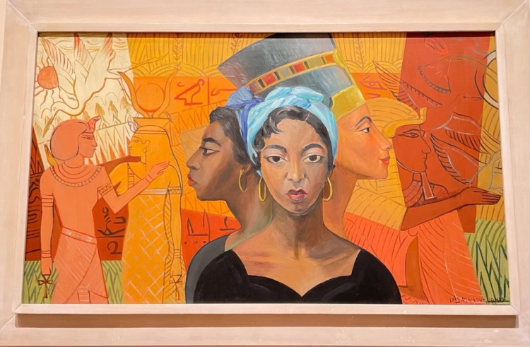 Loïs Mailou Jones, Egyptian Heritage, 1953, 画家的自画像以古埃及人物和符号为背景,表明和古埃及的关系