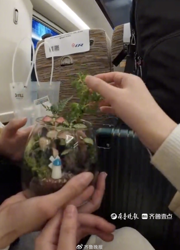 从上海虹桥中转到杭州东的高铁上,邻座小姐姐向小圆分享自己的绿植。