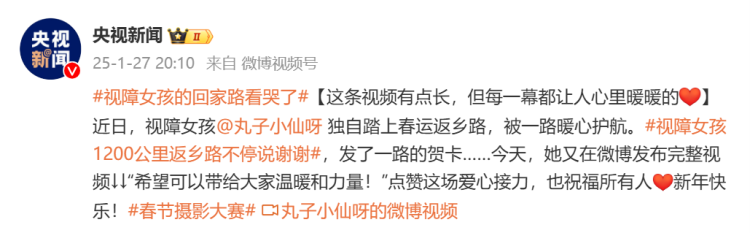 近日,“视障女孩独自返乡1200公里被接力护送”的视频在网络传播,感动了无数网友。