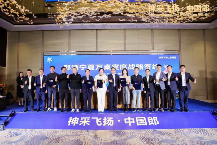 此次活动的一大亮点,便是宁夏万桌宴席的战略签约。活动现场,郎酒与宁夏当地5位核心餐饮渠道商家代表——宁夏福苑实业集团有限公司、宁夏德隆楼德鼎一品餐饮有限公司、贺兰县千江悦餐厅、宁夏聚兴华餐饮管理有限公司、银川马伟餐饮经营管理有限公司,达成2025年度中国郎宴席伙伴战略合作,宣布将在银川、固原两地开展“万桌宴席”活动,覆盖宁夏地区1/30适酒人群,首开西北超大规模宴席样板。