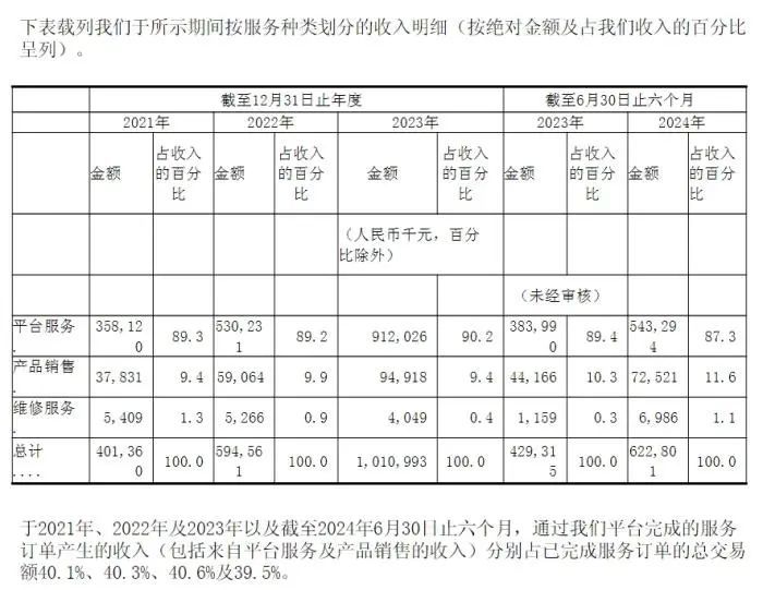 啄木鸟招股说明书披露,2021年、2022年、2023年及2024年上半年,通过其平台完成的服务订单产生的收入(包括平台服务及产品销售的收入)占已完成服务订单的总交易额的40%左右。这也意味着,啄木鸟从服务订单中收取了高昂佣金。