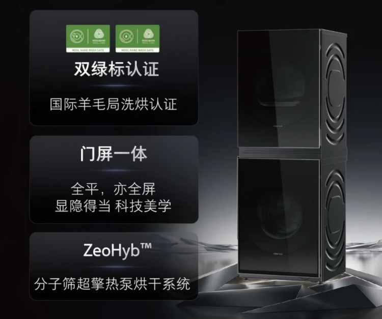在洗烘技术高端认证方面,国际羊毛局洗烘双绿标代表着洗烘羊毛织物的顶级标准。然而,市场上获得该认证的产品的价格居高不下,万元以下几乎难觅踪迹。而石头科技通过独创的ZeoHyb分子筛超擎热泵烘干系统、RR Mariner全域精控算法等黑科技,不仅解决了传统洗烘技术中存在的难题,破解了烘干机静音、高效、节能的不可能三角,更成功地将洗烘双绿标产品带入了万元以内的价格区间,真正实现了 “科技平权”。