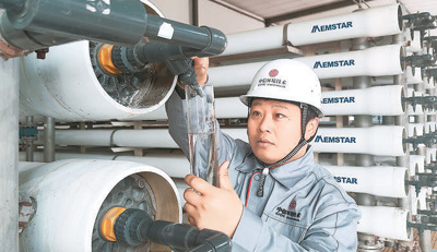 At CITIC Envirotech's wastewater treatment plant in Gaoyang county, Baoding city, north China's Hebei Province, streams of industrial wastewater flow through pipes. After a series of complex treatment processes, the once-polluted water emerges clear and meets discharge standards.